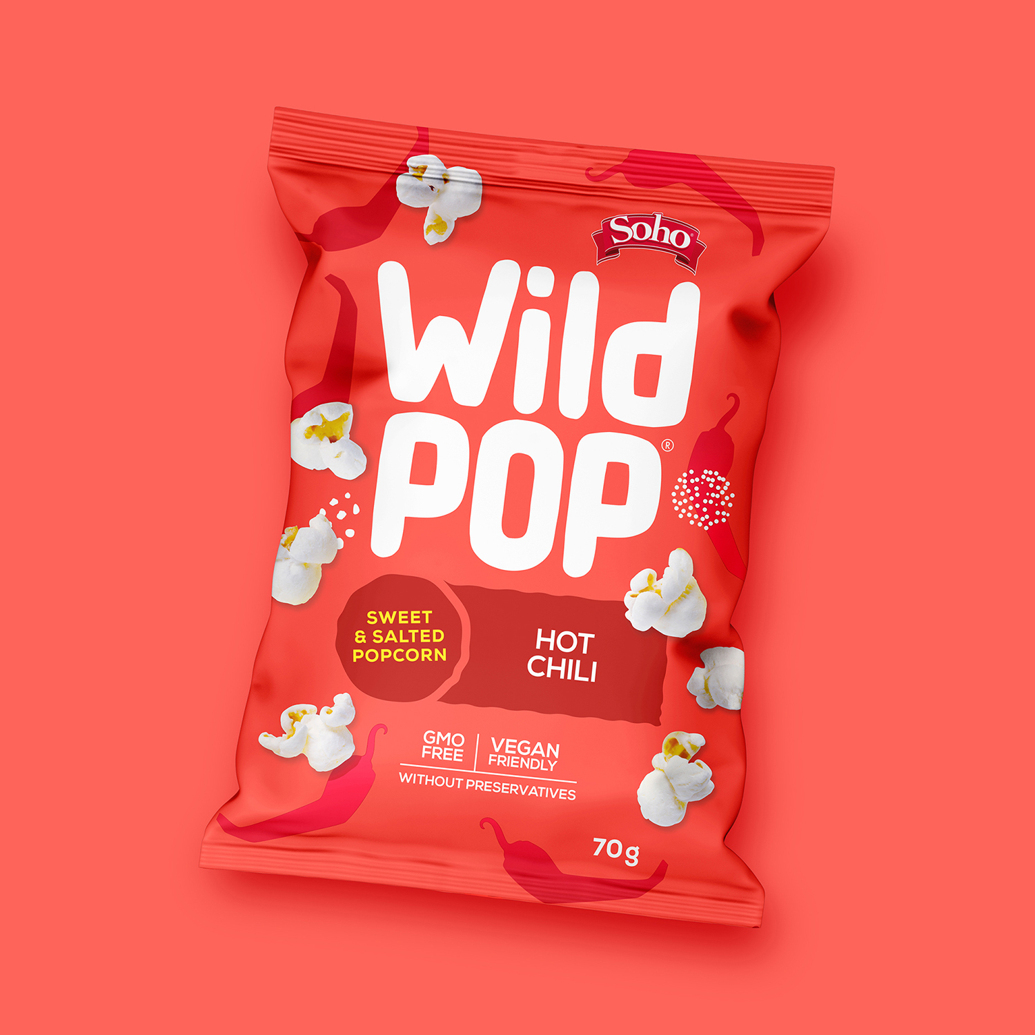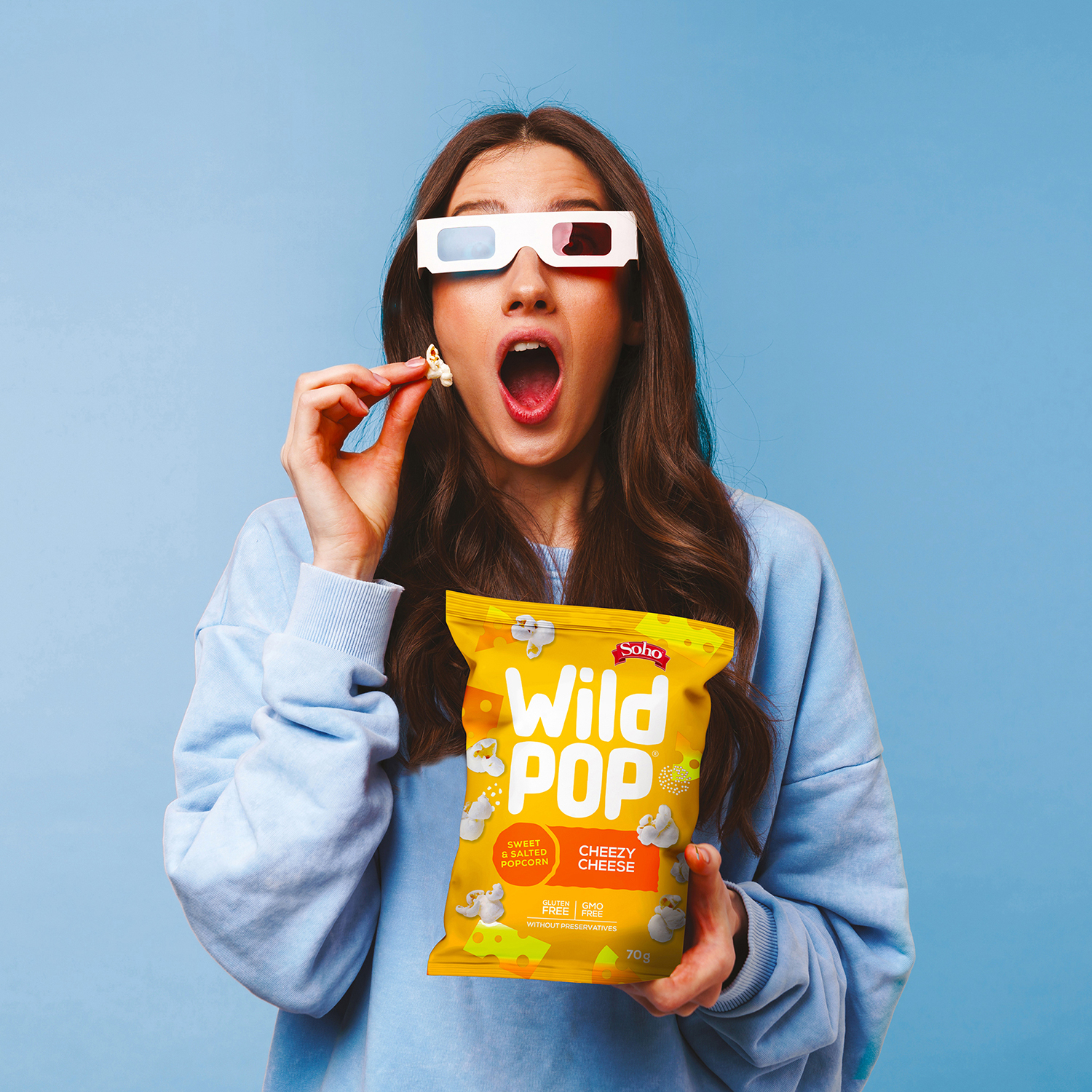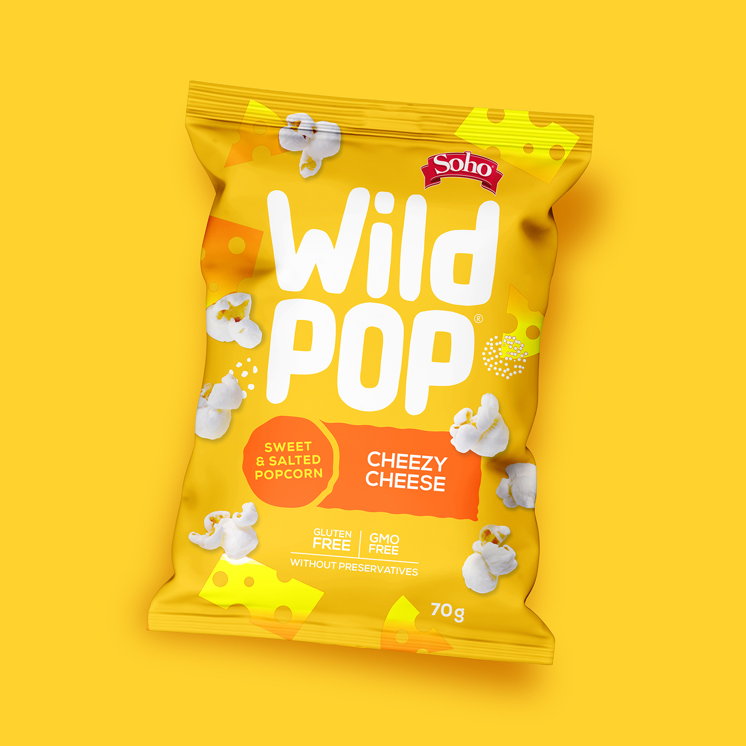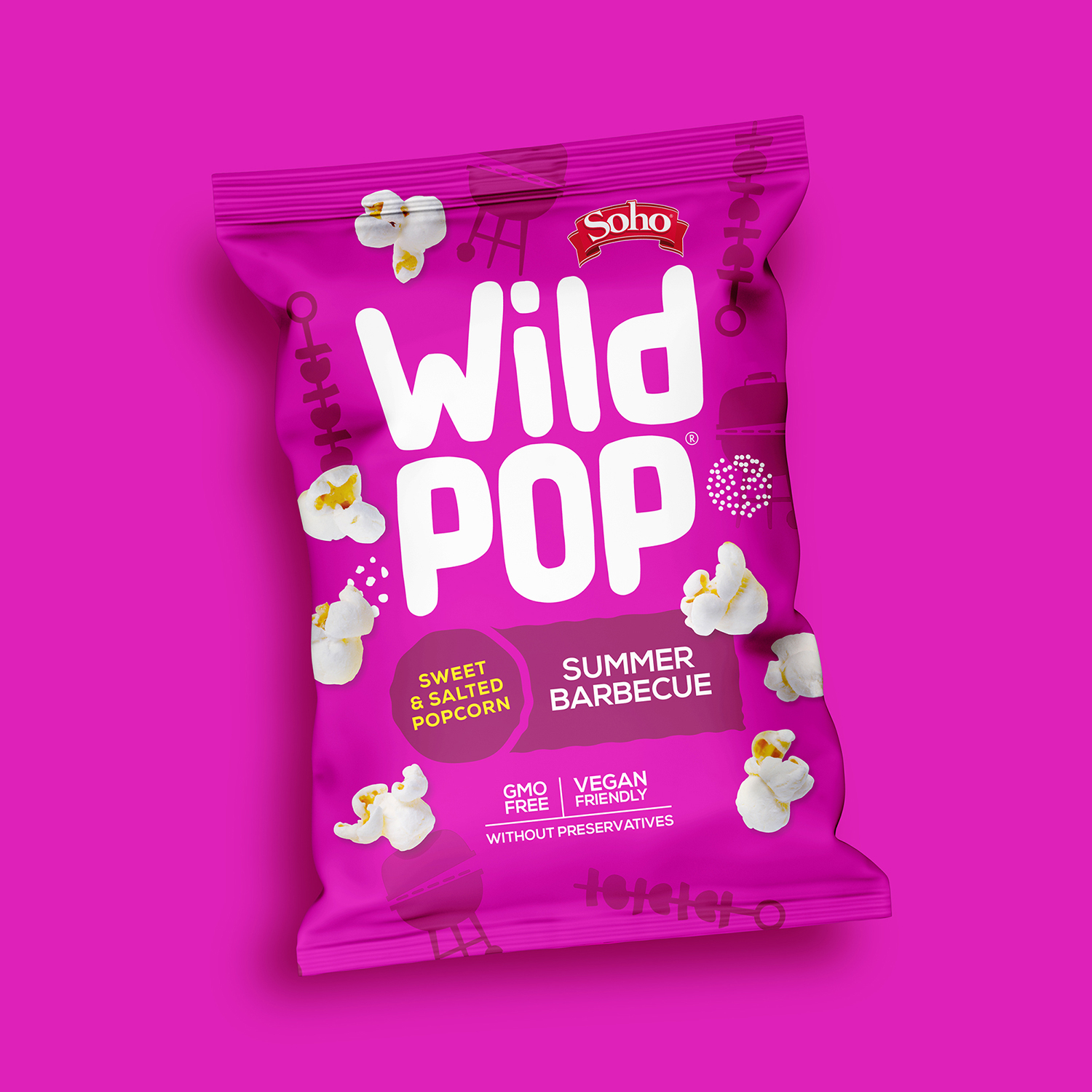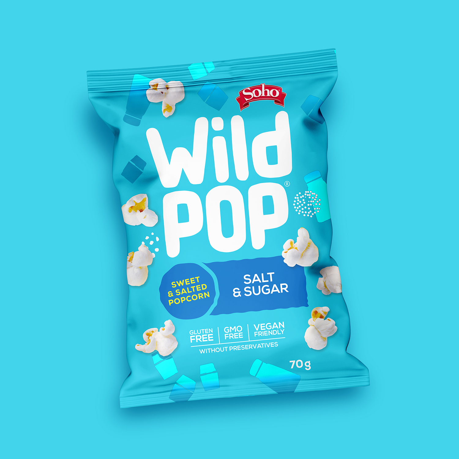 Design de la nouvelle gamme de packaging Popcorn sucré/salé WildPop pour