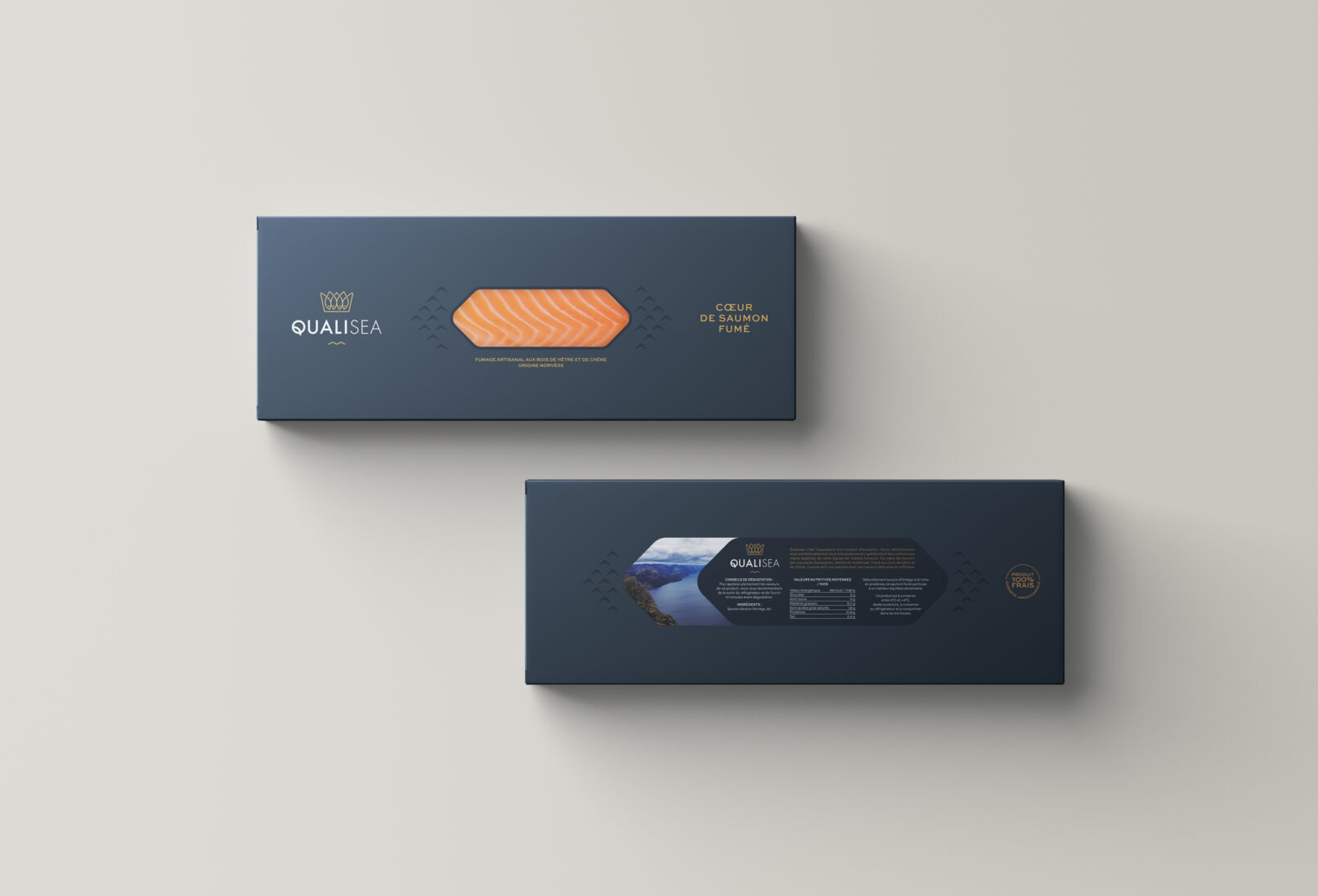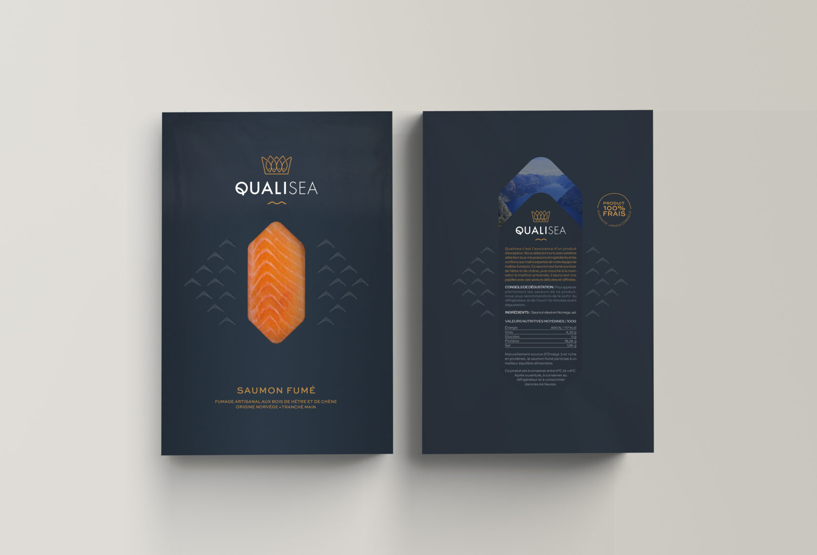 Design du logotype et de la gamme de packagings de la marque Qualisea du Groupe L’Assiette Nordique, acteur de référence de la transformation et de la distribution de produits de la mer au Maroc.